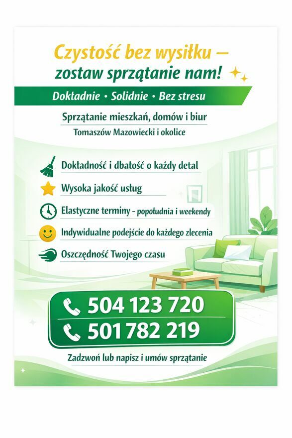 Zadzwoń lub napisz i umów sprzątanie. Zapraszam serdecznie.